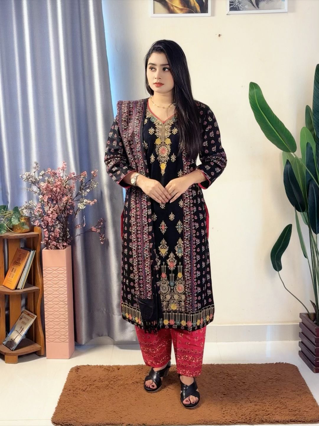 â–Ēī¸ āĻ•āĻžāĻŽāĻŋāϜ: Cotton fabric- Full body block print with Embroidery & Mirror work