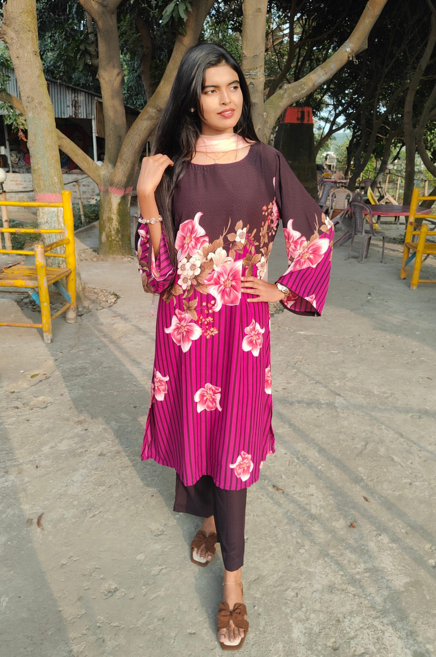 কামিজ: ক্যান্ডি বাটারফ্লাই সিল্ক (Digital flower print)