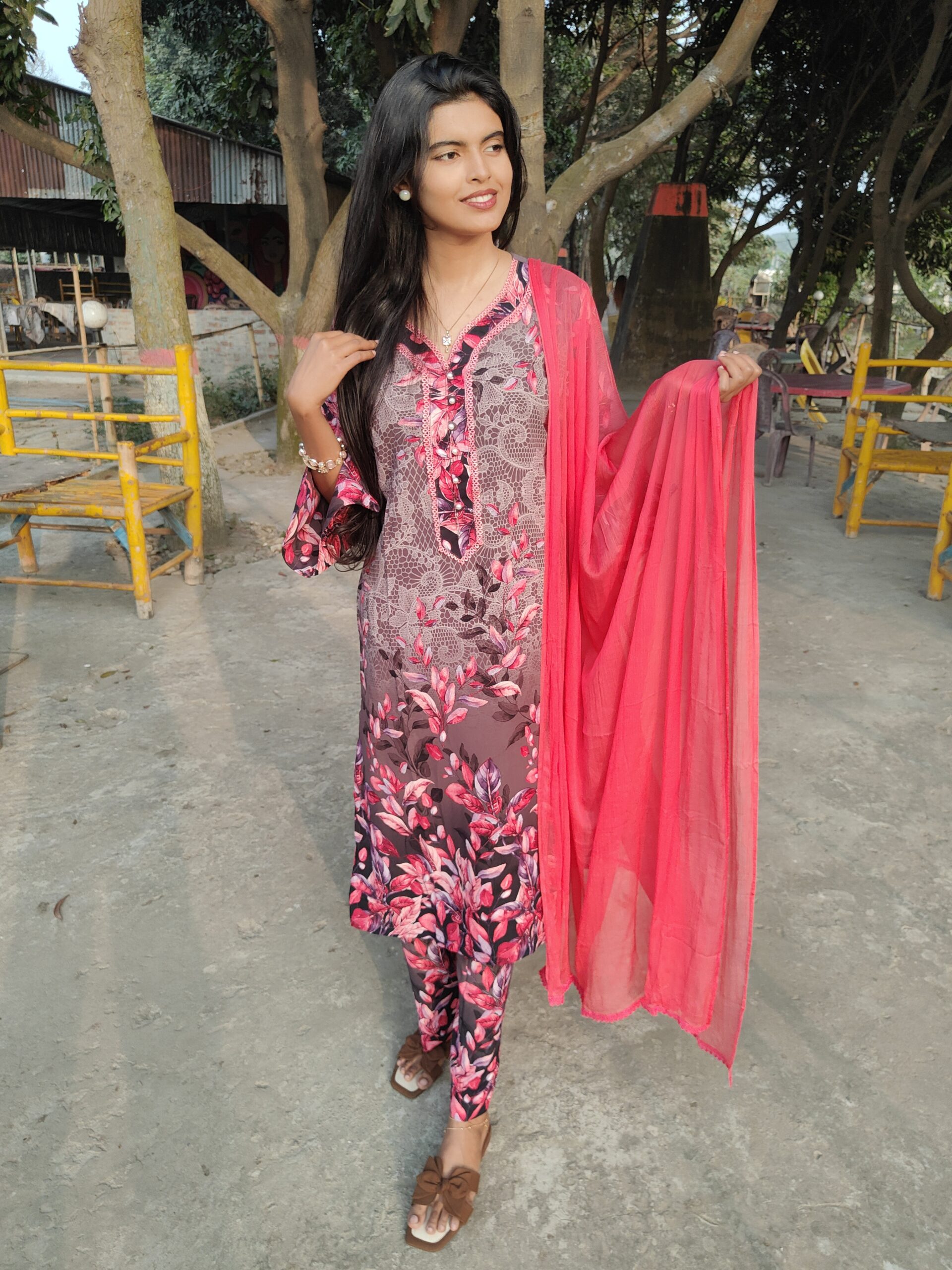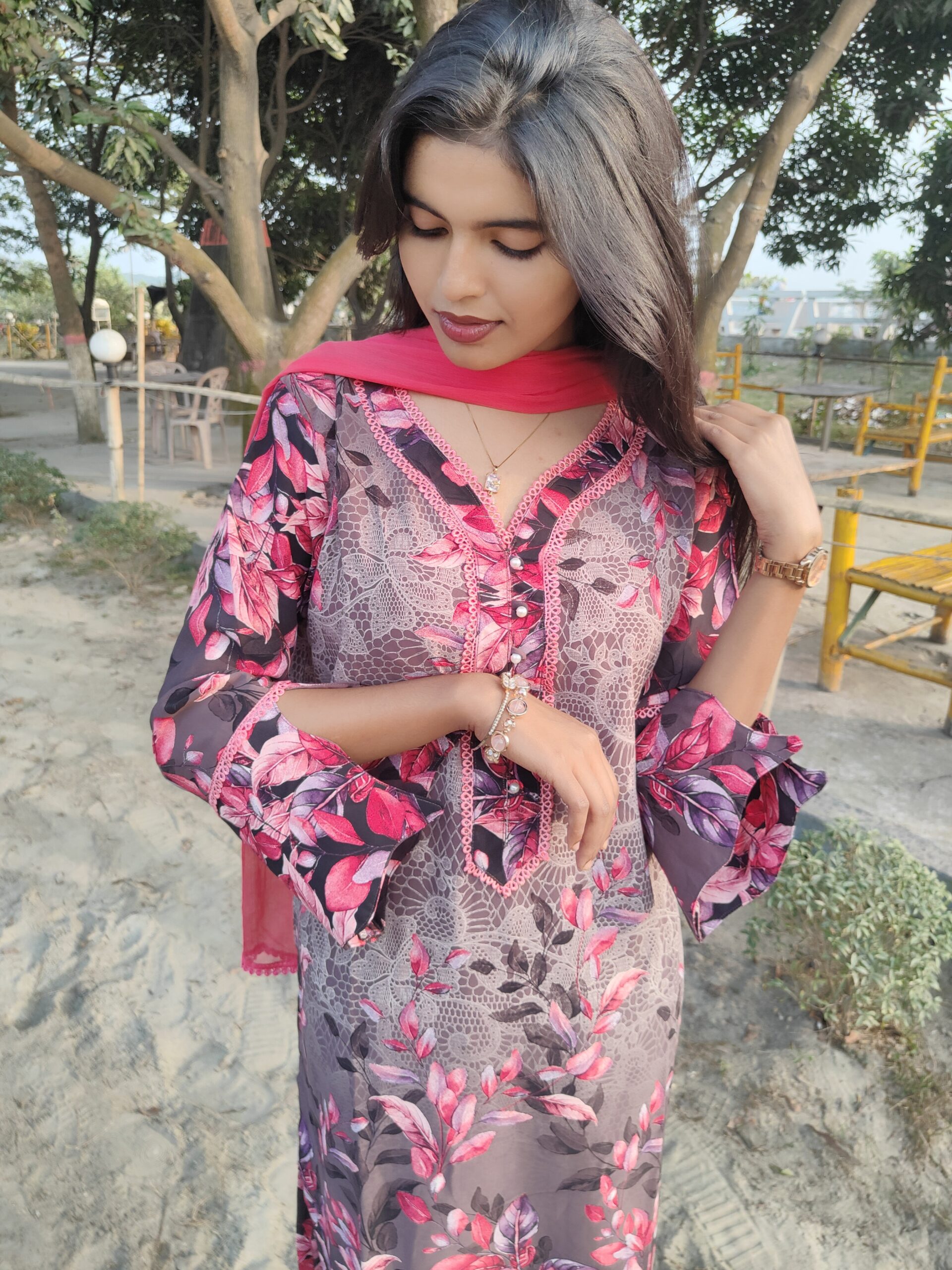 āĻĄāĻŋāĻāĻžāĻāύ: Stylish design with Lace work in (Neck portion + Sleeves portion)
