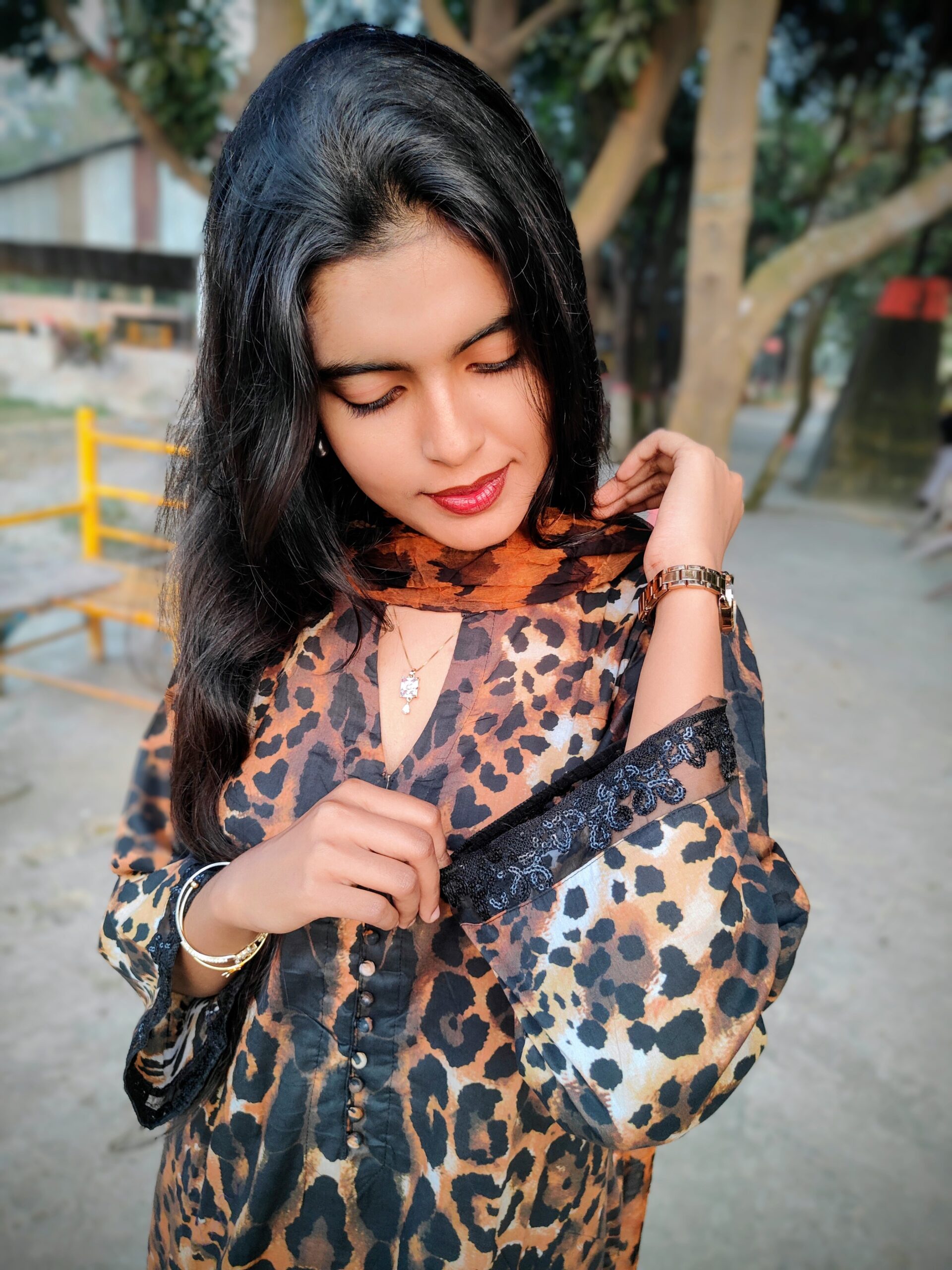 ▪️ কামিজ: Cotton -Tiger print with Embroidery & stylish design in- Neck Portion